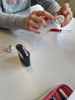 Die Drittklässler widmeten sich dem Thema Elektrizität. Sie bauten einfache Stromkreise, lernten erste Schaltskizzen kennen und testeten, welche Materialien Strom leiten. Zum Abschluss entstand das beliebte Geschicklichkeitsspiel „Der heiße Draht“.