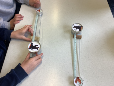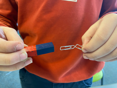 Am nächsten Tag stand das Thema Magnete im Fokus. Unterschiedlichste Versuche klärten Fragen wie: „Was ist magnetisch?“, „Wie verhalten sich Magnete zueinander?“ und „Wie kann man etwas magnetisieren?“.
