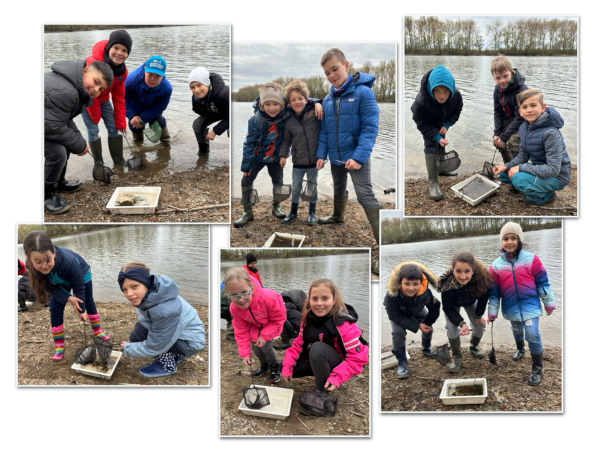 Gemeinsam mit Frau Backes und ihrem Team erkundeten wir das Leben im Wasser der Rheinauen. Mit Gummistiefeln, Keschern und Wannen ausgerüstet gingen wir neugierig auf die Suche nach Leben. Dass zwischen dem Sand und den Steinen, die wir aus dem Wasser holten, überhaupt Lebewesen waren, konnte sich zuerst keiner vorstellen. Wir staunten nicht schlecht, als wir immer mehr von den winzigen Tierchen entdeckten.