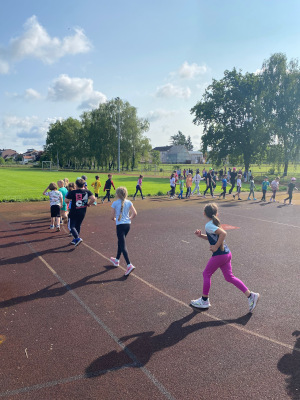 Am 5. Juni starteten wir das gemeinsame Aufwärmtraining bei optimalen Wetterbedingungen. Unter der Leitung von Frau Wagner, unserer Sportlehrerin, begaben sich die Jahrgänge mit ihren Klassenleitungen zu den jeweiligen Startdisziplinen. Lauf (30m oder 50m), Schlagball oder Weitsprung/Zonenweitsprung. Anschließend wurde gewechselt.