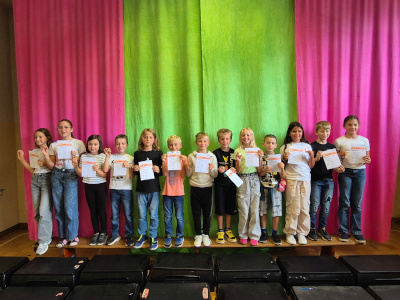 … wie Schulpreise: Unsere Grundschule erreichte im letzten Durchgang den 1. Platz im Bereich der Sportabzeichen des Sportkreises Bruchsal. Vom erzielten Preisgeld können wir ein attraktives Spielgerät für den Pausenhof anschaffen. Und auch in diesem Jahr konnten viel Sportabzeichen verliehen werden. Insgesamt wurden in der letzten Schulwoche 89 Sportabzeichen überreicht. Außerdem wurde unser Schulpreis für außergewöhnliche Leseleistungen bei „Antolin“ an Paula Alt aus der Klasse 4b verliehen. Wir gratulieren allen Preisträgerinnen und Preisträgern von ganzem Herzen!