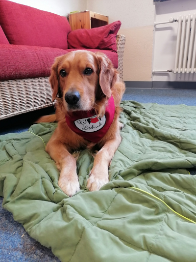Zur Förderung des Lesens unserer Schüler und Schülerinnen gibt es an unserer Schule seit dem Schuljahr 2024/25 ein besonderes Projekt. Ein speziell ausgebildeter Lesehund besucht uns regelmäßig, um die Lesefreude und -motivation der Kinder zu unterstützen und zu fördern.