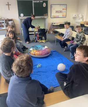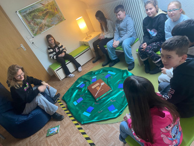 Nun stand also fest, welchem Titel die Kinder jeweils zugeteilt worden waren, doch blieb bis zuletzt offen, welcher Vorleser oder welche Vorleserin sich hinter dem jeweiligen Angebot verbarg und welche Mitschüler und Mitschülerinnen mit dabei sein würden. Als sich schließlich alle Gruppen gefunden hatten, wurde es still in den Fluren und die Vorlesezeit in allen Räumen (von der Turnhalle im Keller, bis zum Musikzimmer unter dem Dach) konnte beginnen. Es war für jeden Lesegeschmack etwas Besonderes geboten: Es gab magische, spannende, romantische, lustige und verhexte Geschichten und alle kleinen und großen Beteiligten kamen nach dieser außergewöhnlichen Stunde strahlend und begeistert in ihre Klassenzimmer zurück.